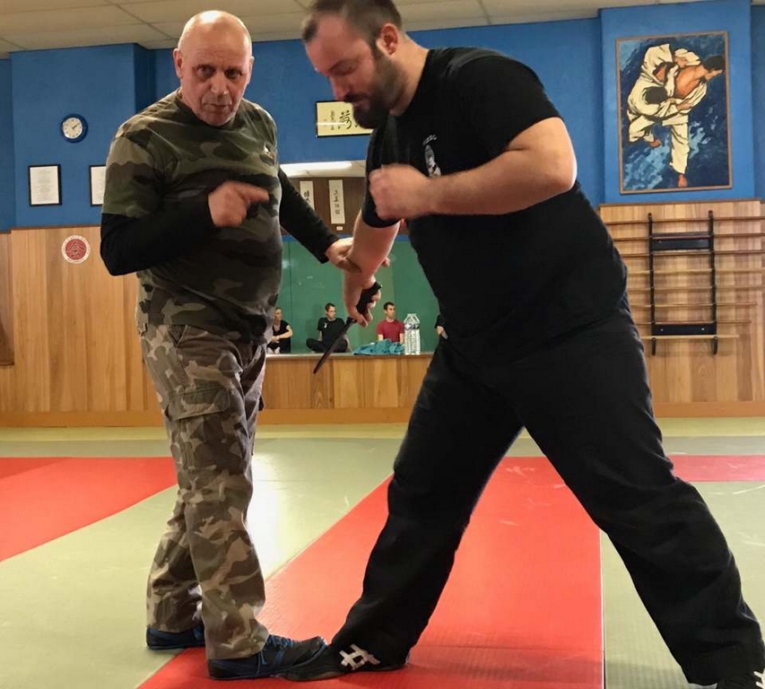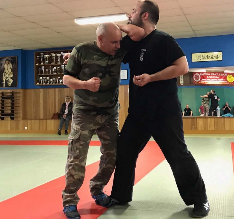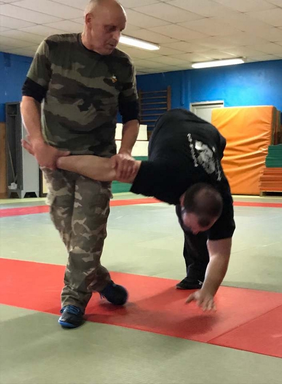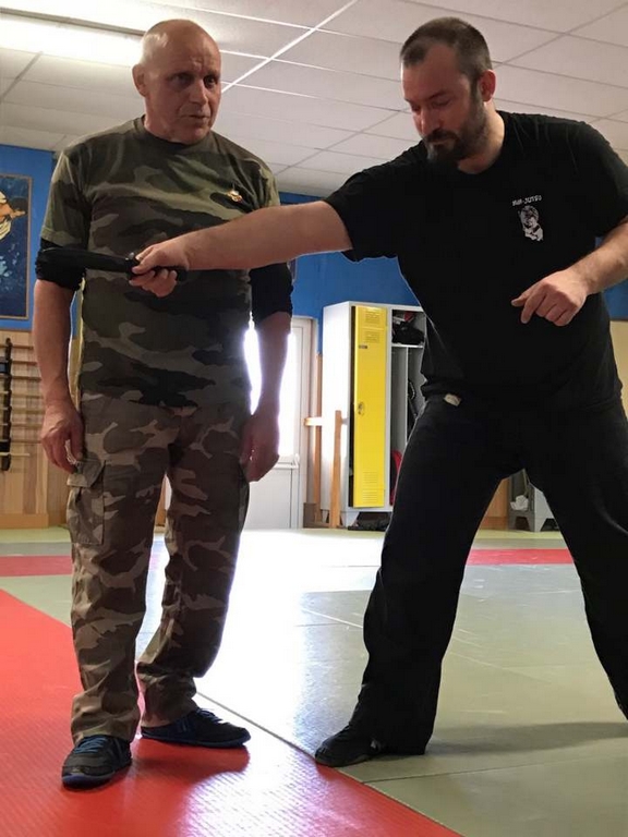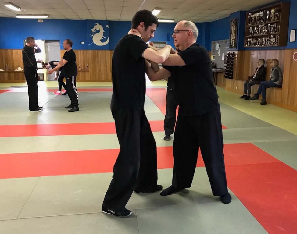 Intéressant stage de NIN-JUTSU, animé par PAUL Fernand, 5ème Dan FEKAMT Yseishindo, responsable de section au Cercle d’Arts Martiaux à MACON. Merci à Julien FOURNEAU, son partenaire lors des techniques abordées ce samedi. Attaques sur coups de poing, étranglements, coups de pieds, et armes blanches se sont succédées tout au long de l’après-midi.