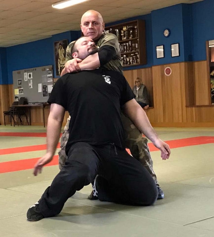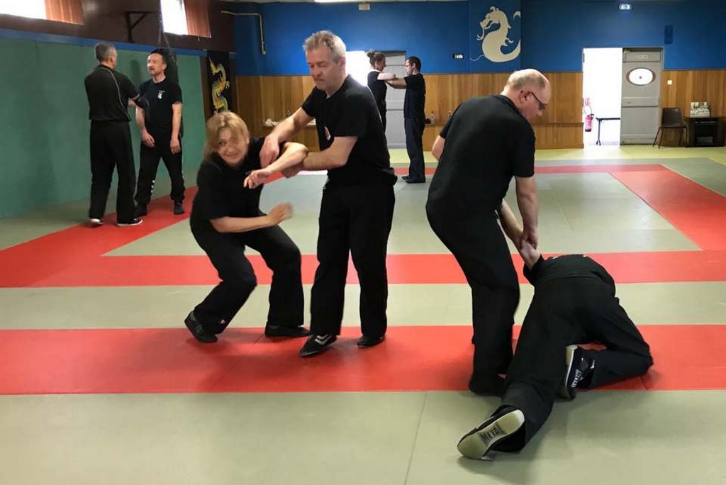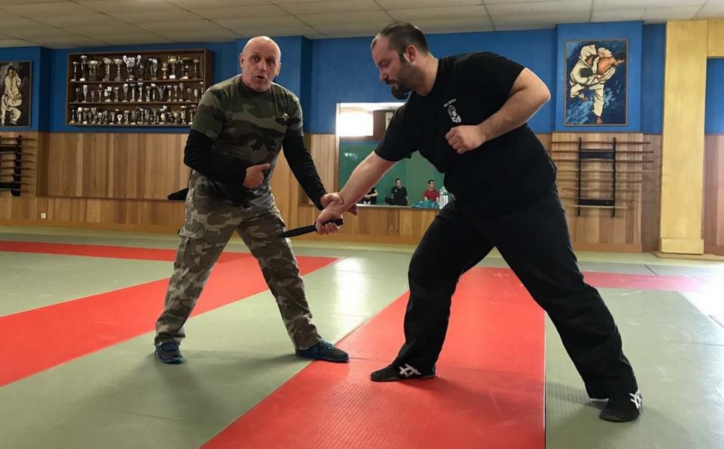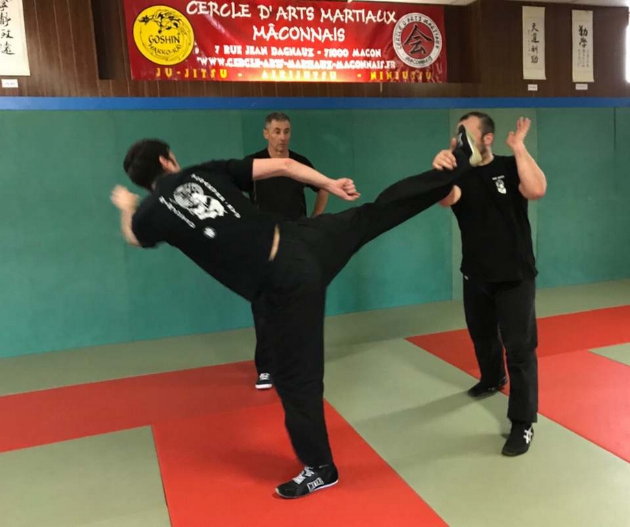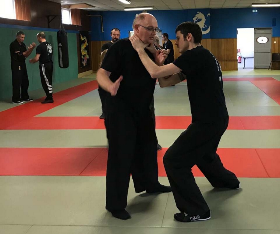 Intéressant stage de NIN-JUTSU, animé par PAUL Fernand, 5ème Dan FEKAMT Yseishindo, responsable de section au Cercle d’Arts Martiaux à MACON. Merci à Julien FOURNEAU, son partenaire lors des techniques abordées ce samedi. Attaques sur coups de poing, étranglements, coups de pieds, et armes blanches se sont succédées tout au long de l’après-midi.